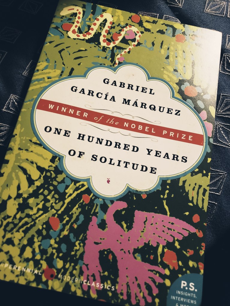 Today, I begin Gabriel Garcia Marquez’s One Hundred Years of Solitude. The back cover gives little away yet implies that the reader is in for a treat of the ages. Honestly, the author won the Nobel Prize… that has to count for something, right?